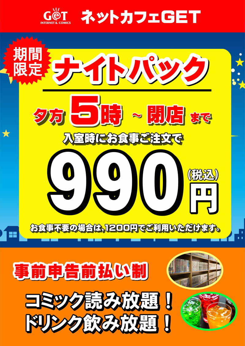 17時から受付! お得なナイトパック実施中